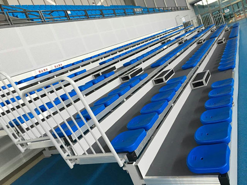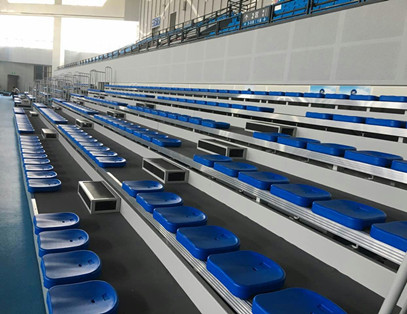 揚中市奧體中心游泳館前來體驗,藍色座椅實力增強,白色看臺架明確相關要求,與游泳池整體主色調(diào)一致重要組成部分,顯得非常和諧大氣認為。