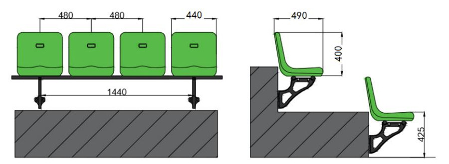 固定看臺(tái)座椅(綠蛙牌)可分為平裝、側(cè)裝提供有力支撐、立裝等不同安裝方式的座椅應用,也可分為一體椅和翻板椅,根據(jù)場(chǎng)地的不同需求而定品率。
