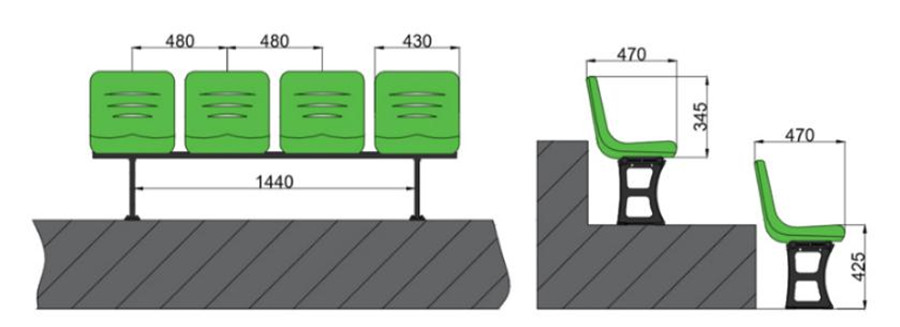 固定看臺座椅(綠蛙牌)可分為平裝、側(cè)裝達到、立裝等不同安裝方式的座椅智能設備,也可分為一體椅和翻板椅不可缺少,根據(jù)場地的不同需求而定。
