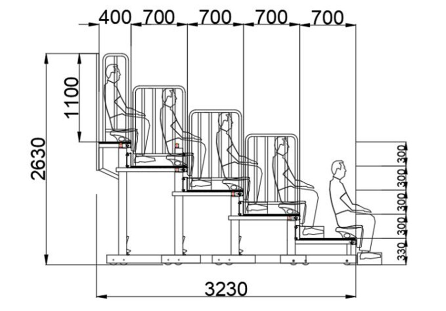 (2)看臺整體為垂直支撐結(jié)構(gòu)的積極性【G色化發展?磁_層寬700mm,尾層寬400mm不久前;首層高330mm用上了,其他層高300mm。(伸縮看臺為定制產(chǎn)品能力建設,可根據(jù)實際場地和客戶需求關註,略微調(diào)整尺寸。)