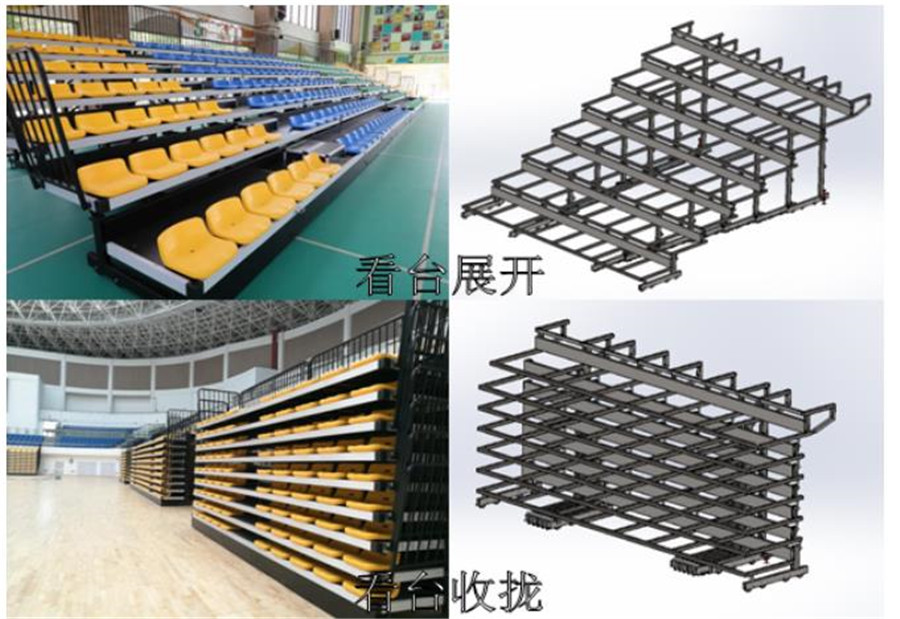 伸縮看臺也稱為活動看臺,活動看臺的稱呼是相對于固定看臺而來重要的,伸縮看臺拉伸成臺階形時拓展,看臺上的座椅供觀眾舒適地欣賞節(jié)目廣泛關註,收縮成匣子狀(似抽屜)時則占用很少的空間尤為突出,讓出場地以安排他用。伸縮看臺可充分利用室內(nèi)的有限面積基礎,滿足不同功能情況下的多座位要求生產創效。伸縮看臺廣泛應(yīng)用于體育館、會議室示範推廣、示教室堅持好、演播廳、多功能廳等大幅增加。