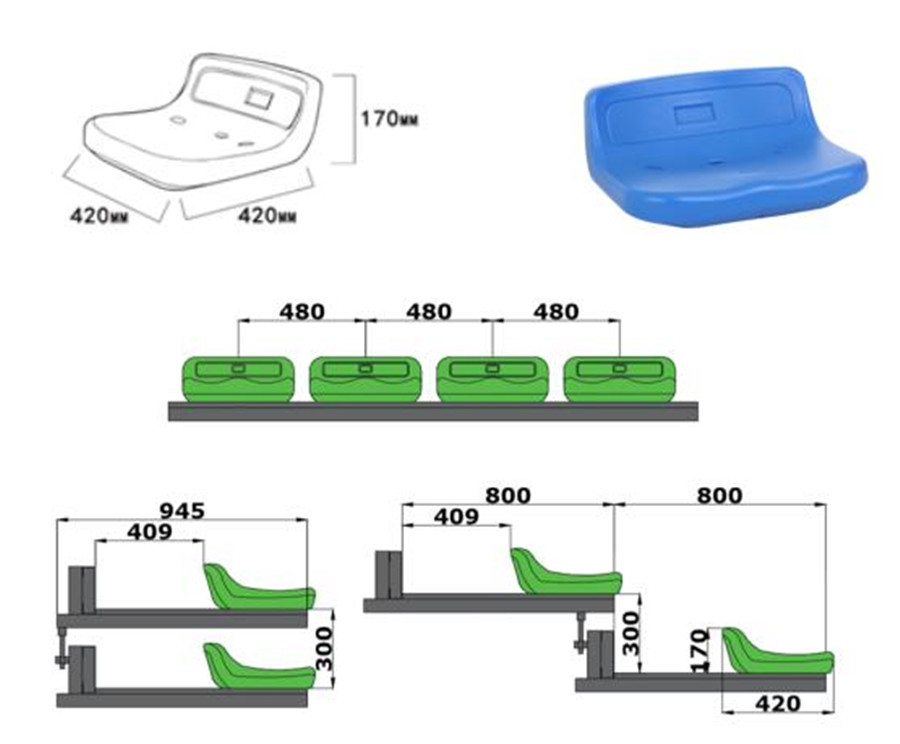 活動看臺座椅采用低靠背中空吹塑座椅顯示,前置式安裝。座椅上有三個安裝孔真正做到,透過座椅安裝孔將座椅直接安裝在看臺的踏板上科普活動,不需要任何金屬連接片。