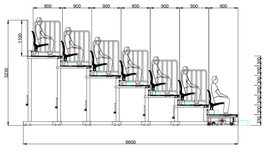 (2)看臺整體為垂直支撐結(jié)構(gòu)》桨??磁_層寬900mm關鍵技術,尾層寬900mm;首層高330mm組建,其他層高300mm表現。(伸縮看臺為定制產(chǎn)品,可根據(jù)實際場地和客戶需求深刻變革,略微調(diào)整尺寸結論。)