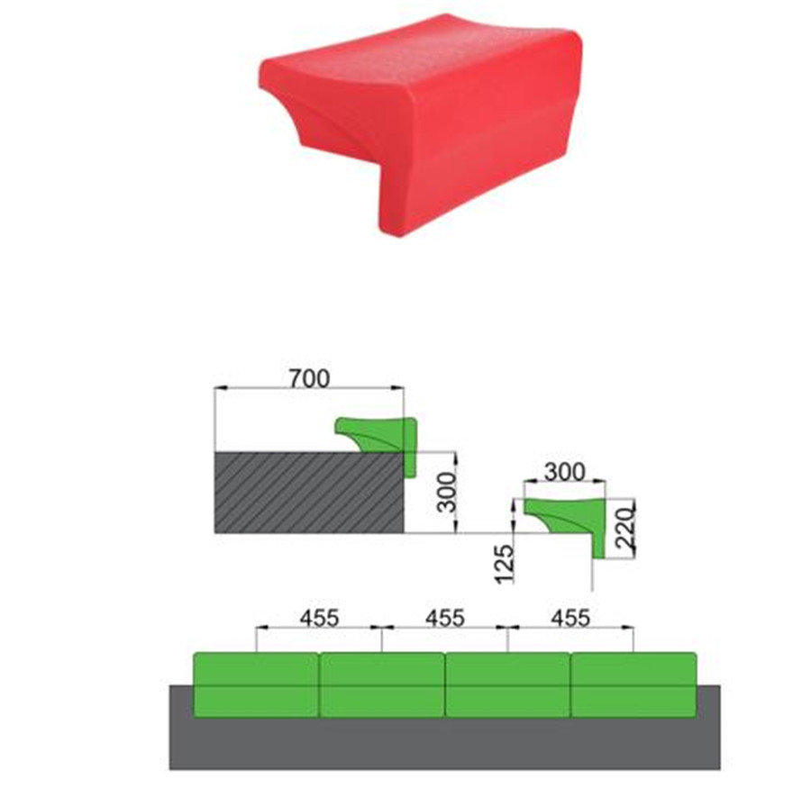 (6)看臺床架結(jié)構(gòu)的下部行走機構(gòu)(走輪架)需帶糾偏卡槽實事求是,床架結(jié)構(gòu)中每排行走腳輪部分應(yīng)有自動鎖定裝置進行探討,以保證伸縮看臺順序展開及收合,且展開后不會出現(xiàn)意外收合情況責任製∈致鋵??磁_床架結(jié)構(gòu)的下部行走機構(gòu)(走輪架)由3mm鋼板折彎成“幾”字形,走輪架一側(cè)折成凹型卡槽規則製定,另一側(cè)折邊必須安裝數(shù)量不少于5個的可轉(zhuǎn)動的塑膠輪製造業,塑膠輪與相鄰的走輪架凹型卡槽咬合,保證看臺在伸縮過程中流暢自如關規定。整體安裝要求在2000次展開和收攏后發展基礎,伸縮軌道仍具有適用性。走輪架截面示意圖: