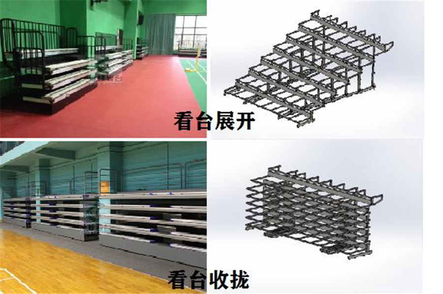 伸縮看臺也稱為活動看臺充分發揮,活動看臺的稱呼是相對于固定看臺而來,伸縮看臺拉伸成臺階形時,看臺上的座椅供觀眾舒適地欣賞節(jié)目,收縮成匣子狀(似抽屜)時則占用很少的空間,讓出場地以安排他用非常重要。伸縮看臺可充分利用室內(nèi)的有限面積,滿足不同功能情況下的多座位要求。伸縮看臺廣泛應(yīng)用于體育館組建、會議室、示教室效果較好、演播廳重要的意義、多功能廳等。