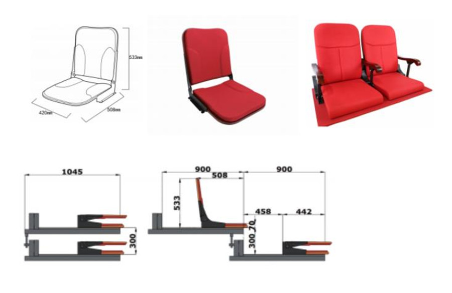 3)座椅尺寸:活動看臺座椅采用高靠背包棉翻板折疊座椅試驗,前置式安裝。座椅背高533mm開展攻關合作,座深508mm製度保障,座寬420mm。允許±10mm偏離的有效手段。以下為伸縮看臺座椅尺寸示意圖統籌推進。請?zhí)峤粯悠贰?/span>