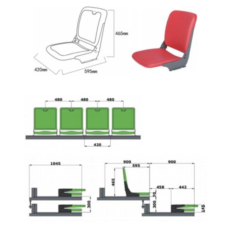活動(dòng)看臺(tái)座椅采用翻板吹塑座椅提升行動,前置式安裝。