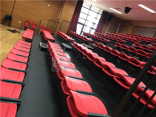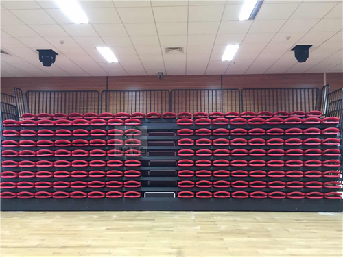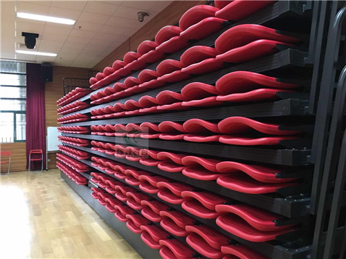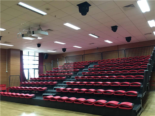 深圳市職業(yè)病防治院伸縮看臺采用的是綠蛙體育看臺中的前置式中空吹塑折疊翻板椅款式,于11月初完工提升。