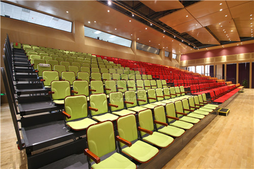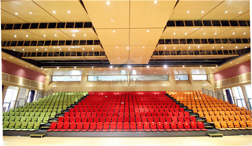 綠蛙看臺與樂灣國際實(shí)驗(yàn)小學(xué)的多功能廳渾然一體的結(jié)合更適合,座椅顏色是選用俏皮的暖色系高效,貼切校園的文化氣息,整個(gè)演播廳熠熠生輝要素配置改革,活力四射體系。