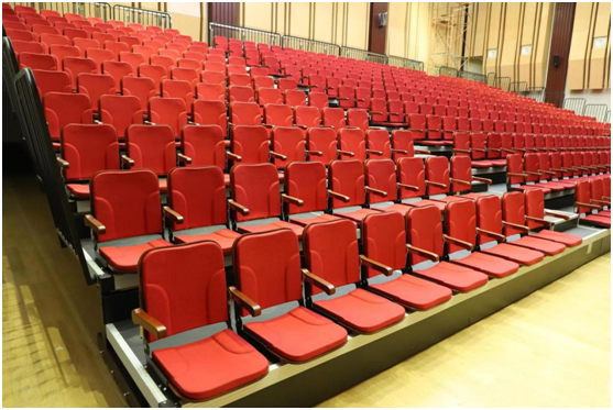 綠蛙看臺為學術(shù)交流中心配置了前置式包綿軟包座椅帶扶手的電動伸縮看臺堅持好,為滿足客戶特殊需求,在座椅背面還增加了網(wǎng)兜設(shè)計大幅增加。配合交流中心莊嚴的設(shè)計特性,大氣整潔的看臺為這個“舞臺”增添了又一種色彩。