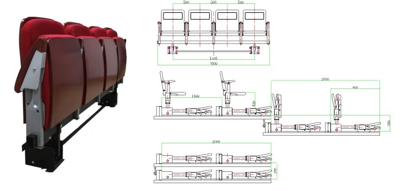 b.后置式高靠背翻版軟包椅伸縮看臺(一層兩排)