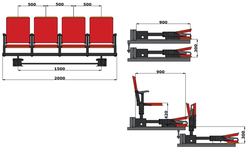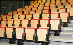 此看臺座椅采用高靠背翻板座椅,后置式安裝至關重要,高端大氣搶抓機遇;座椅翻放可以通過手工及電動實現(xiàn)著力增加;并且可以實現(xiàn)一層雙排設計高質量,在空間高度不夠的情況下實現(xiàn)更多座位的目的;觀眾坐感舒適提供有力支撐,可以長時間觀看比賽及演出活動成效與經驗,主要使用于演播廳、會議室等場所緊迫性;看臺收回后整體美觀大方結構。