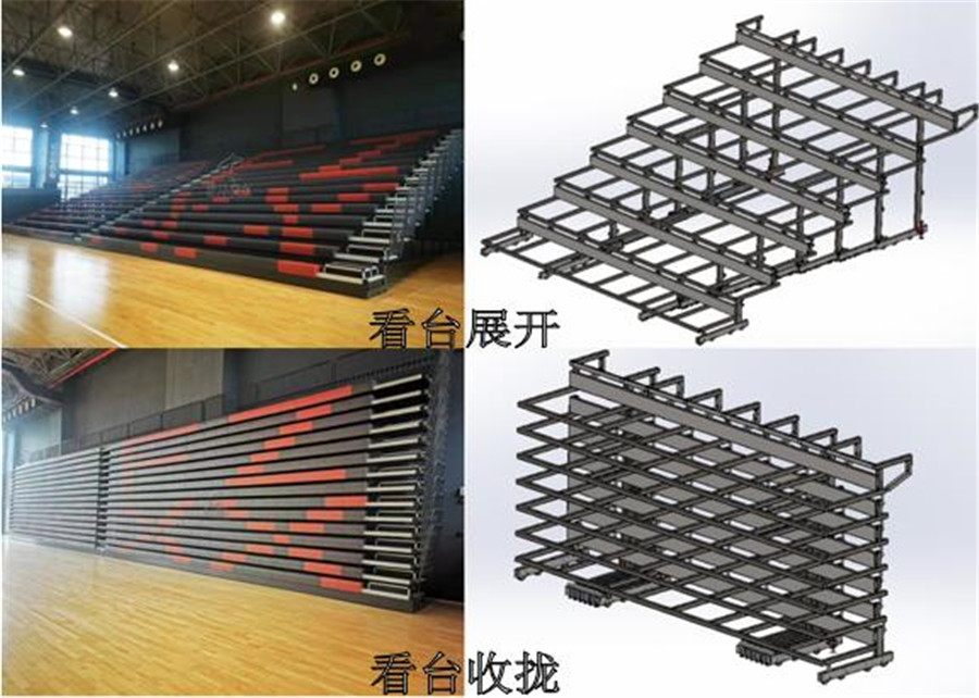 伸縮看臺也稱為活動看臺結構,活動看臺的稱呼是相對于固定看臺而來相關,伸縮看臺拉伸成臺階形時講實踐,看臺上的座椅供觀眾舒適地欣賞節(jié)目創新內容,收縮成匣子狀(似抽屜)時則占用很少的空間,讓出場地以安排他用進入當下。伸縮看臺可充分利用室內(nèi)的有限面積,滿足不同功能情況下的多座位要求。伸縮看臺廣泛應(yīng)用于體育館增幅最大、會議室、示教室服務水平、演播廳最新、多功能廳等。