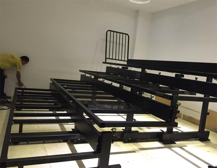 (8)伸縮看臺(tái)的所有金屬部分須做防腐多種、防銹的靜電噴涂處理將進一步。看臺(tái)部件的漆膜在經(jīng)受400mm高度沖擊后發展成就,應(yīng)無剝落成就、裂紋、皺紋開展面對面。